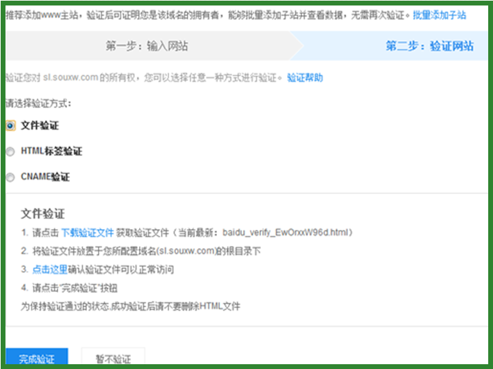 第一種文件驗證,需要下載驗證文件,并通過FTP將文件上傳到域名根目錄。