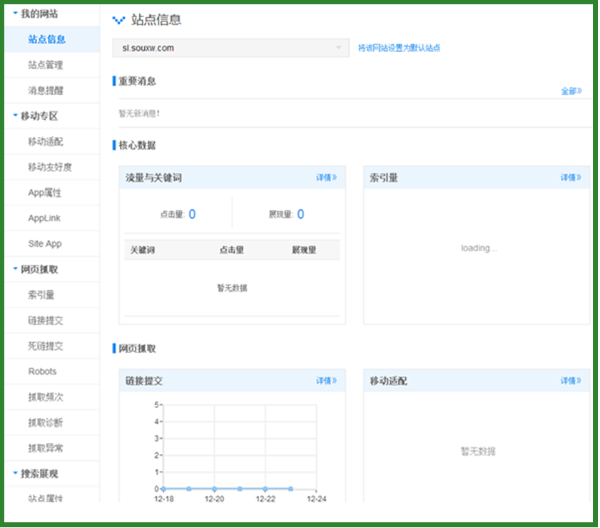 驗證后,進入“我的網站”,左側會出現相關列表信息。