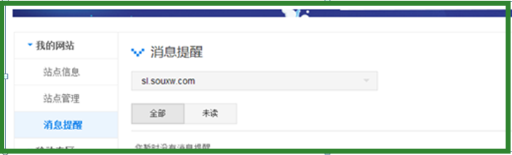 第五步:點擊左側消息提醒,如果站點有什么信息,會在這里進行提示
