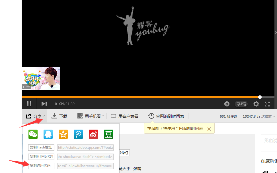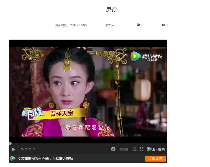 首先:將需要展示的視頻,上傳到騰訊視頻或愛奇藝第三方視頻網站平臺