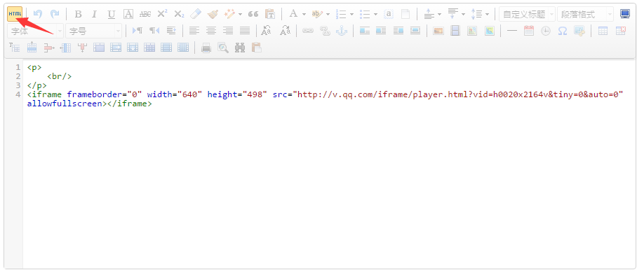 將獲取的地址復制粘貼在后臺編輯器插入視頻的位置