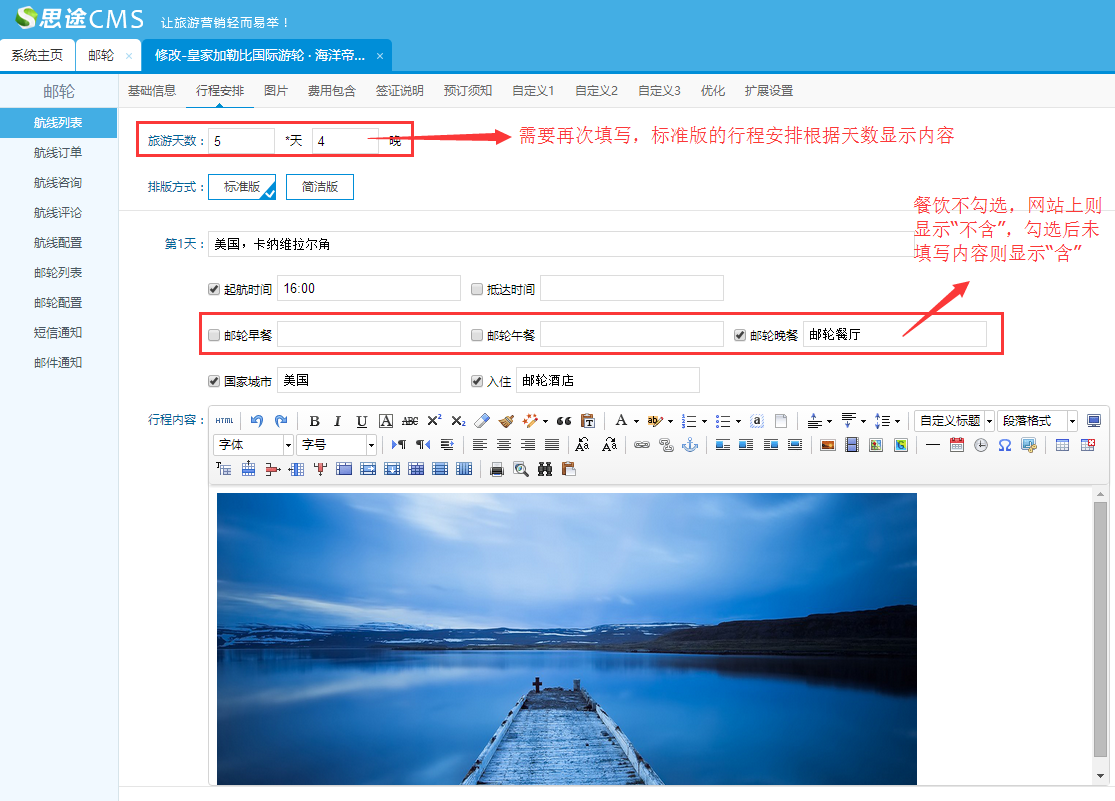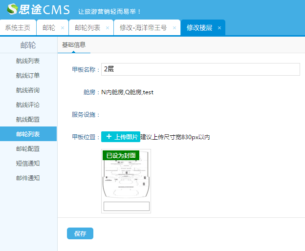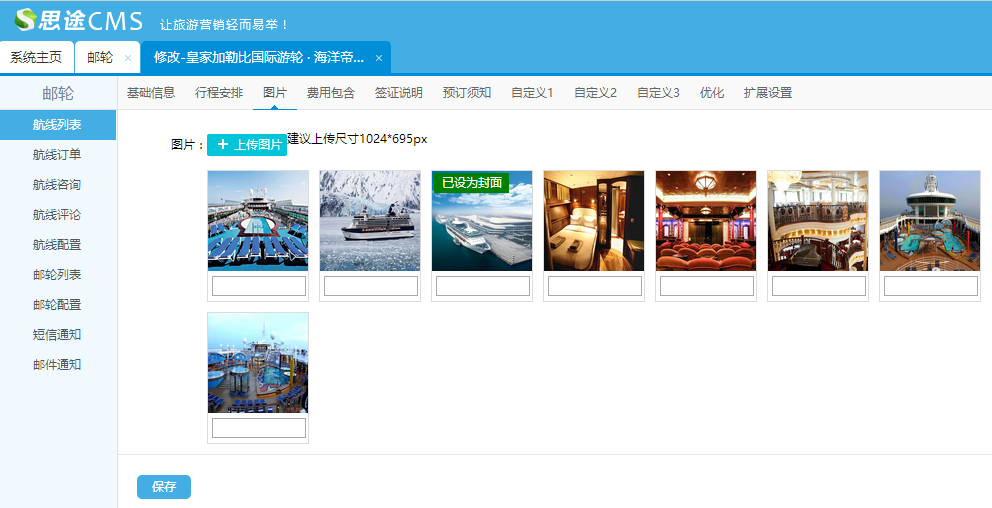(1)添加基礎信息:包括郵輪名稱、郵輪介紹、所屬的郵輪公司、以及郵輪的基礎信息等