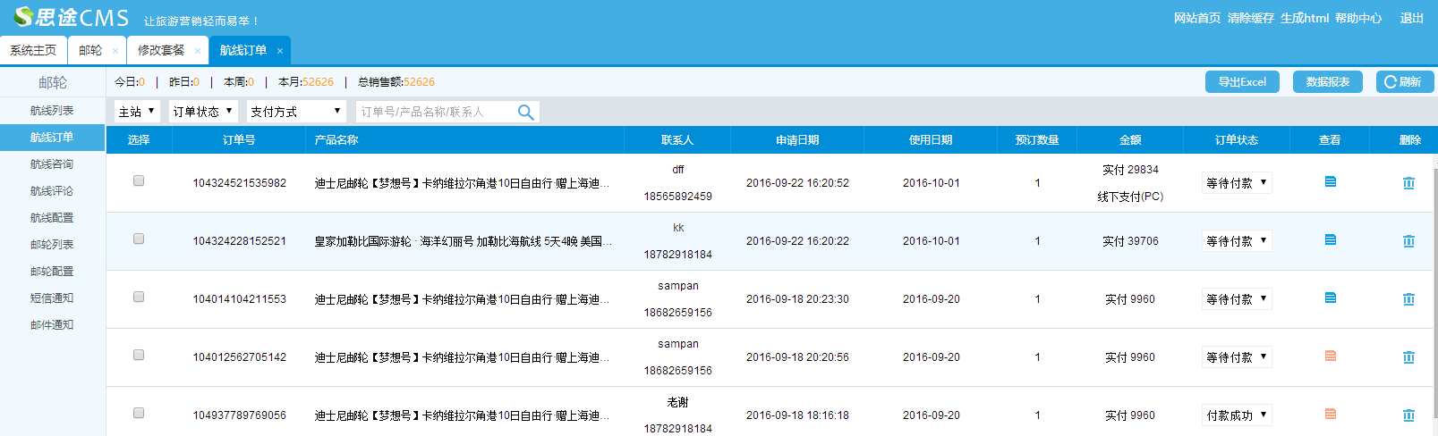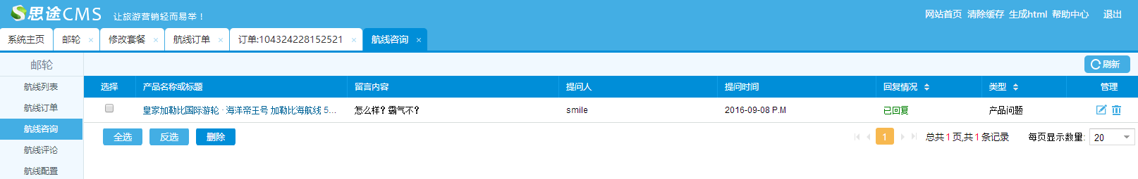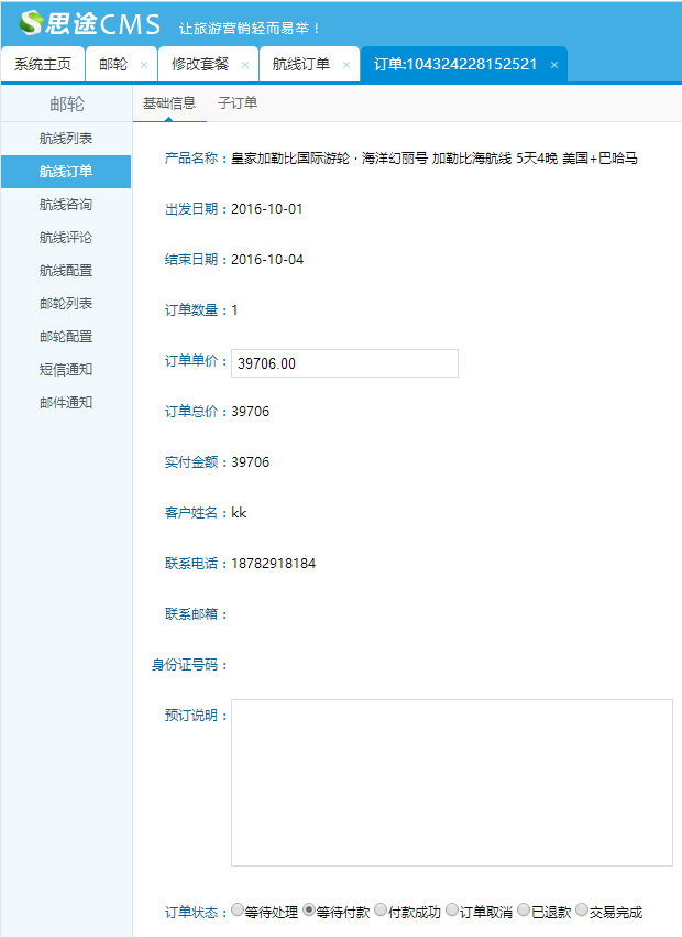 2、添加郵輪,在郵輪列表添加郵輪產品