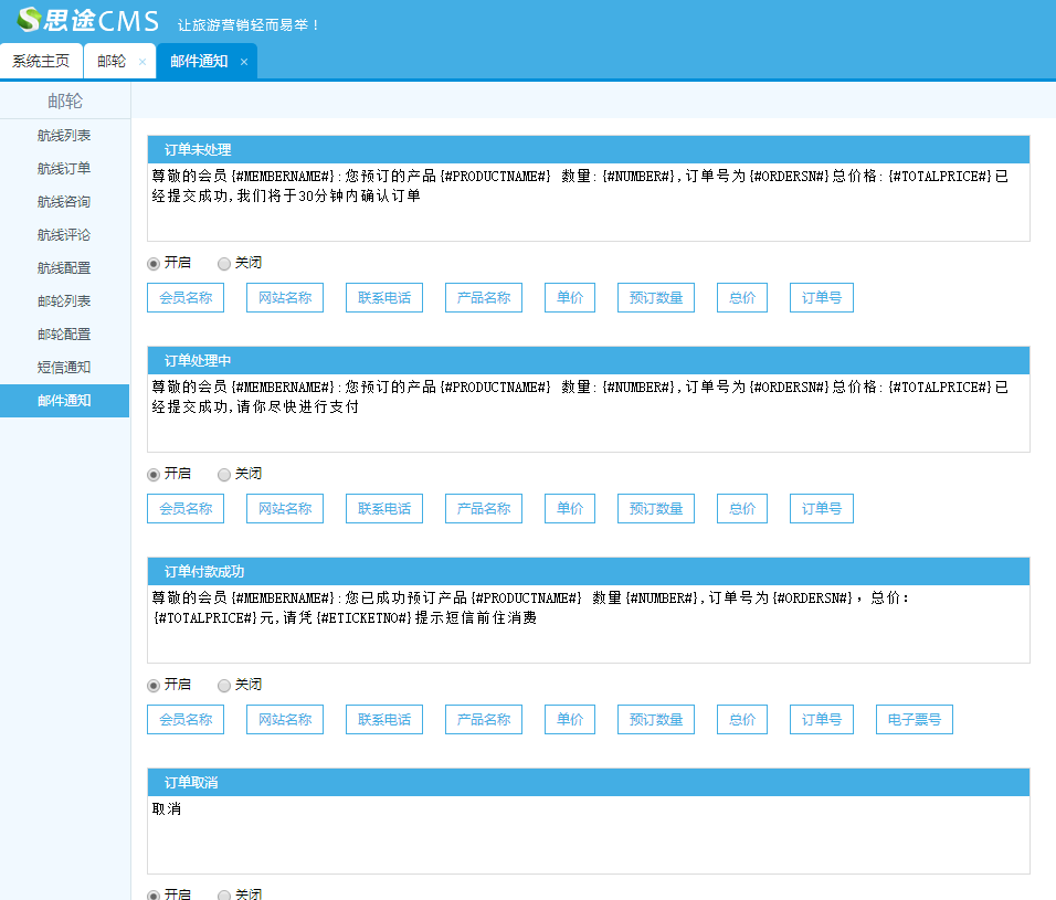 在列表中增加郵輪供應商,填寫相應的資料并保存