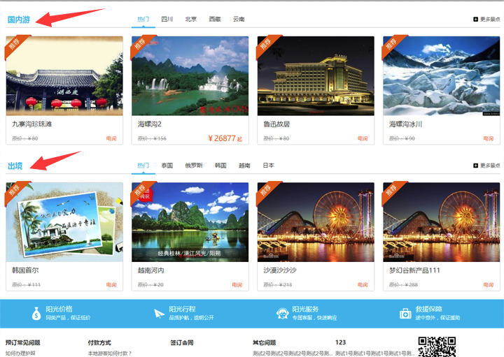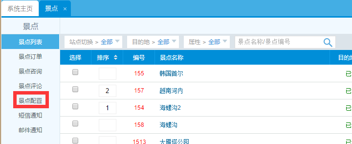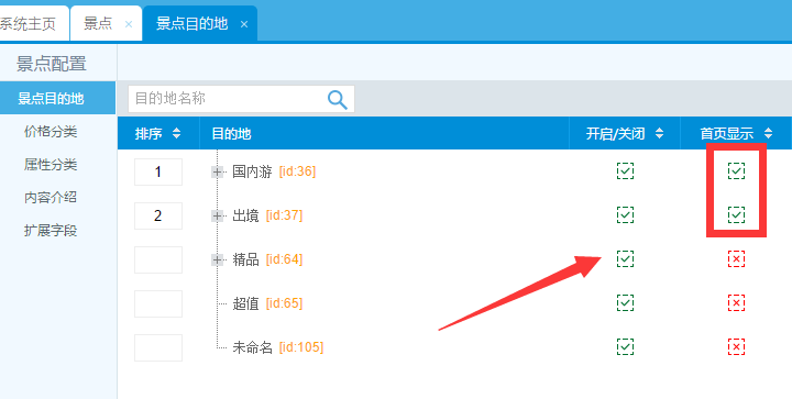景點目的地必須是開啟狀態,并且勾選在首頁顯示才會在前臺顯示