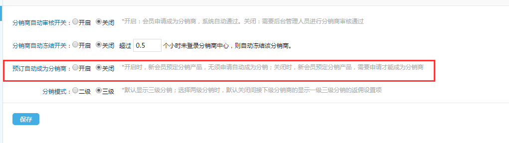 關閉自動審核開關,分銷商需要通過管理員審核才能成為分銷商;開啟自動審核開關,分銷商申請后直接成為分銷商