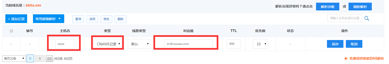 使用第三方服務器,類型需要選擇A記錄 ,對應值填寫對應的服務器的ip地址