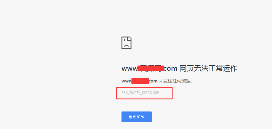 1、ERR_EMPTY_RESPONSE 這種報錯說明是域名問題(域名未備案或域名沒添加白名單或者機房被封了)