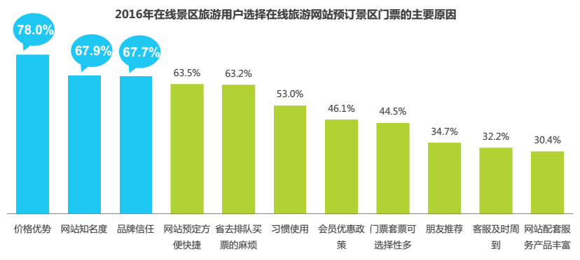 價格、知名度和品牌信任是用戶在線預訂景區門票的主因