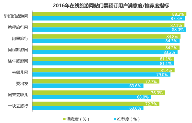 驢媽媽、攜程、阿里旅行景區門票預訂滿意度位居前三位