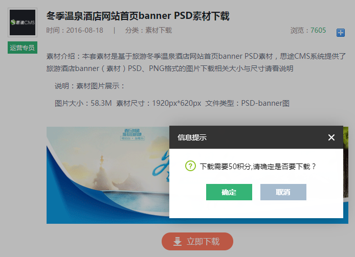我們不定期為會員提供精美的廣告圖片或實用的網站圖標等素材,會員只需要消耗很少的積分,就可以下載這些素材圖片。如果把這些素材圖片用在自己的網站上,那可是分分鐘提升網站美觀度的哦!