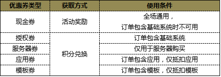 思途目前優惠券分為現金券,授權券,服務器劵,應用券和模板券。除現金券是以活動或用戶獎勵的形式發放意外,其余所有優惠券類型都可通過積分在會員的個人中心內自主兌換。(賺積分的作用就在這里啦)